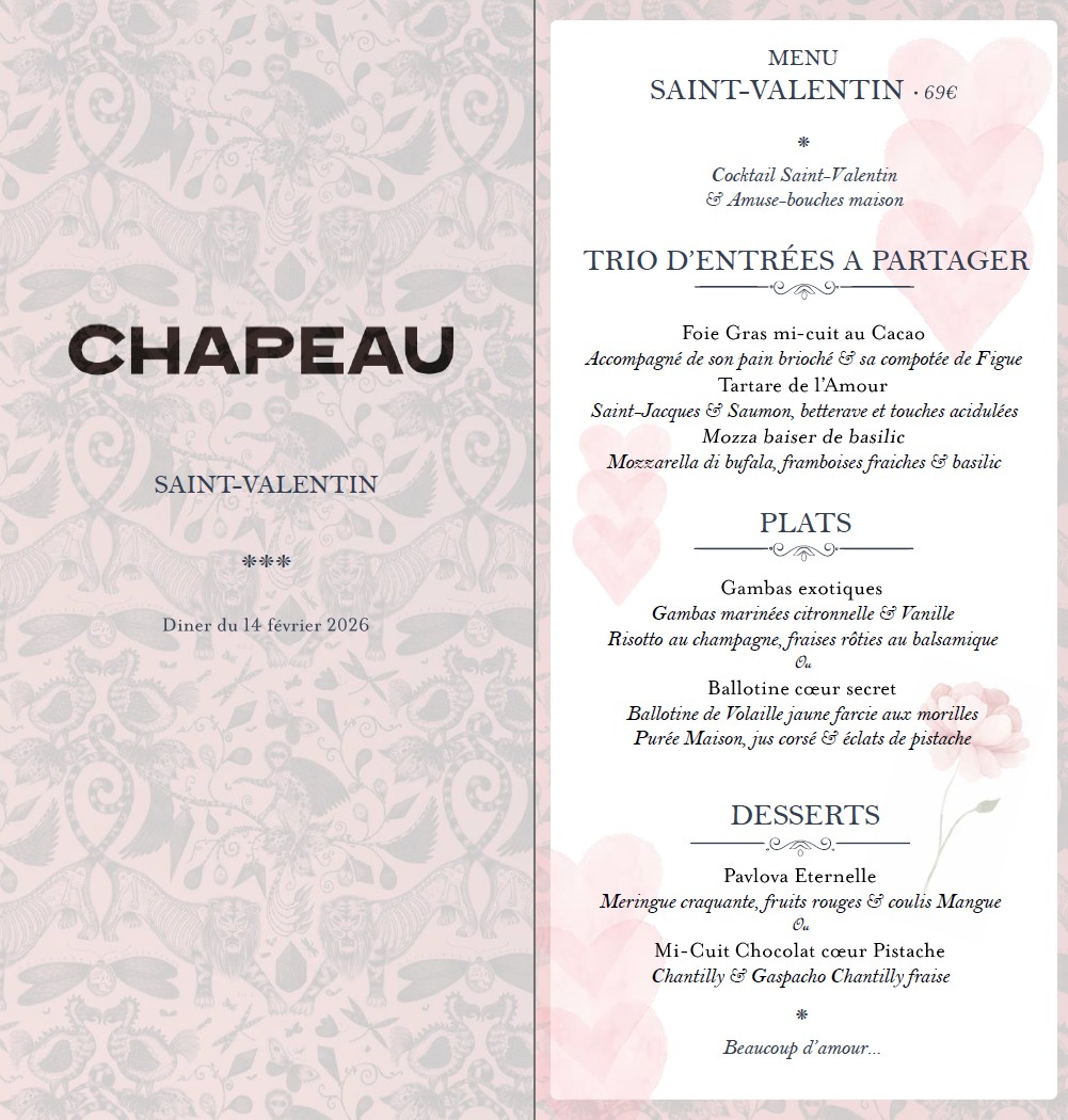 De ce passé singulier est née une institution. Depuis maintenant 150 ans, en plein cœur de Versailles, le CHAPEAU est bien plus qu’un restaurant : c’est un repère, une mémoire vivante. Baptêmes, mariages, repas de famille ou déjeuners d’affaires… Ce lieu a vu passer des générations de Versaillais, et chaque table raconte une histoire. Ici, on vient pour bien manger, mais aussi pour partager un moment, un souvenir, un morceau d’histoire.